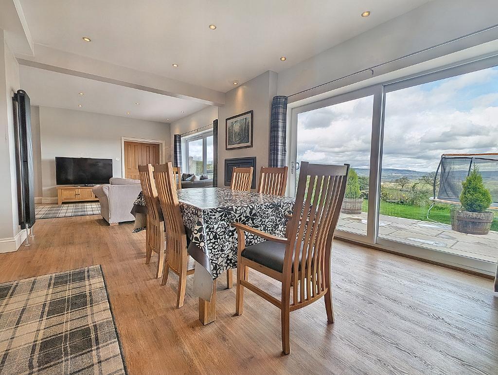 Dining Area: 5.0m x 3.5m (16'3" x 11'5"); with UPVC patio doors and laminate wood effect flooring, open to: