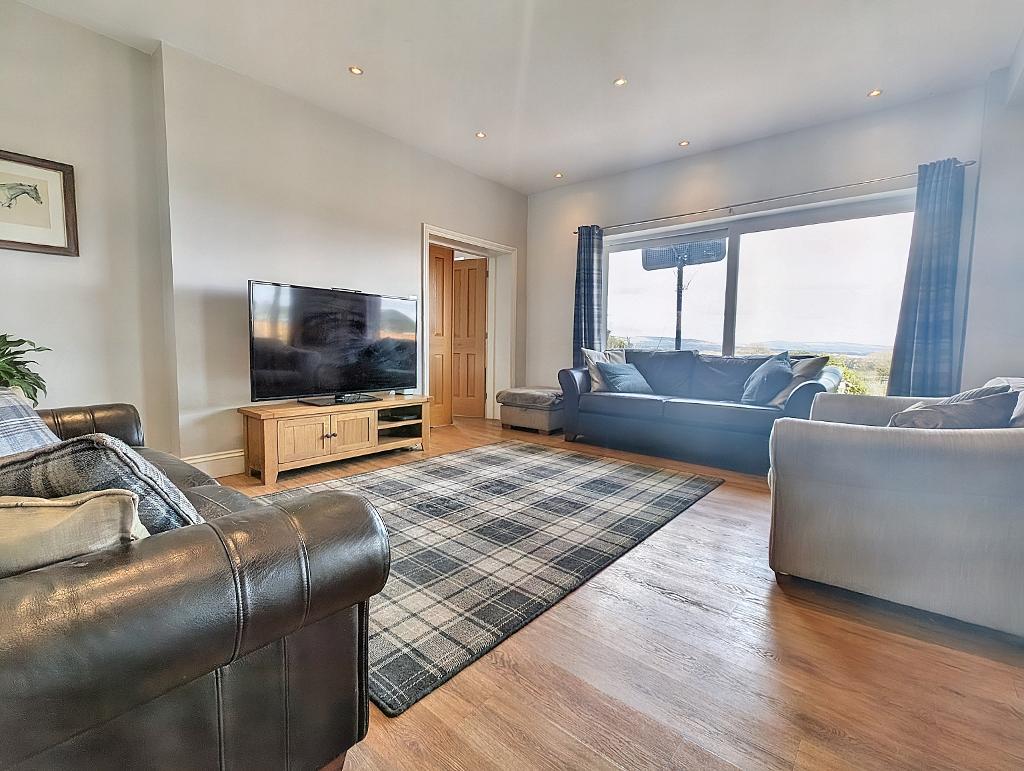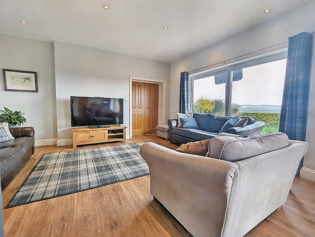 Lounge: 4.2m x 5.0m (13'10" x 16'6"); with UPVC sliding doors, laminate wood-effect flooring and television point, open to: