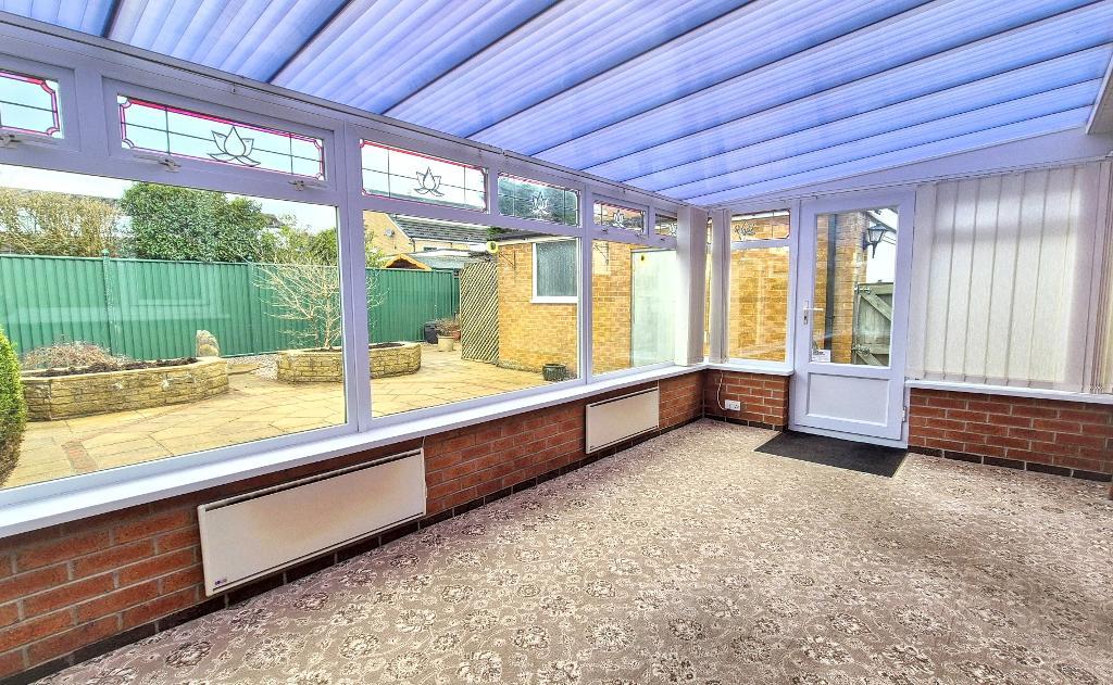 Conservatory: 5.18m x 2.70m (17"0" x 8"10"); a white UPVC lean-to construction with electric heaters and doorway to rear garden.