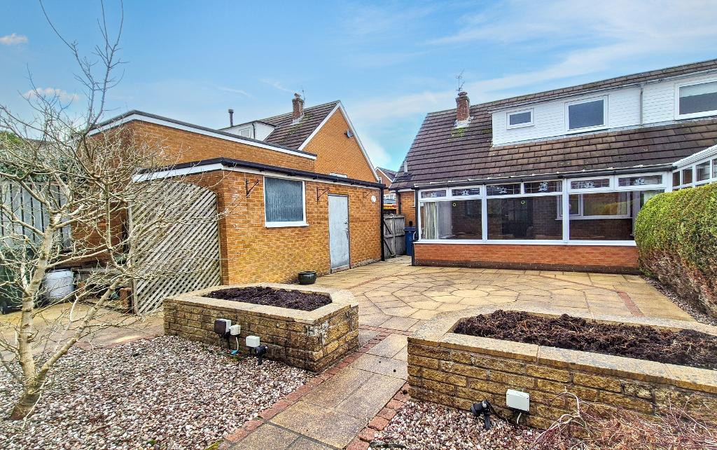 There is a garden to the front with lawned planting borders and brick boundary wall, concrete drive to the side providing private parking and leading to a DETACHED GARAGE which measures 18"5" x 8"11" with up and over door, personal door to the side, power and light. To the rear there is an enclosed easy maintainable paved rear garden with large patio area, raised planting beds and boundary hedging.