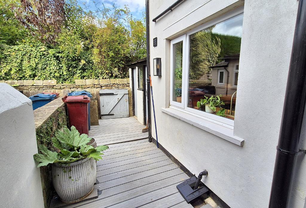 To the front of the property is a front garden with wrought iron railings, York stone pathway to front door and a central lawn with planting borders. To the rear there is a composite grey decked yard with outside lighting. There is a brick built storage shed with electric, light, power and cold water tap.