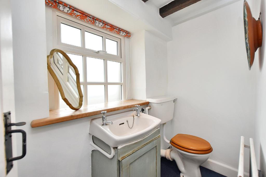 Cloakroom: 2-piece white suite comprising a low suite w.c. and vanity wash-hand basin with chrome taps.