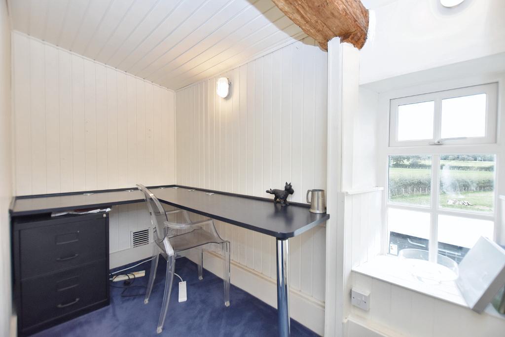 Study: 1.3m x 3.0m (4"3" x 9"9"); with excellent views, built-in desk and feature exposed roof timbers.