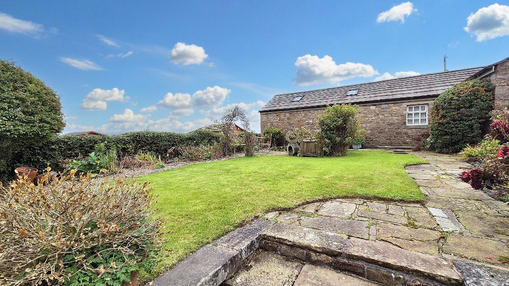 To the front of the property is a forecourt front garden with stone paved pathway and stone boundary wall. There is a lovely enclosed rear garden with cobbled patio area and steps up to lawn with pathways and side planting borders. To the rear of the garden is a Yorkstone paved patio area with pond, flowerbeds and access to the annex.