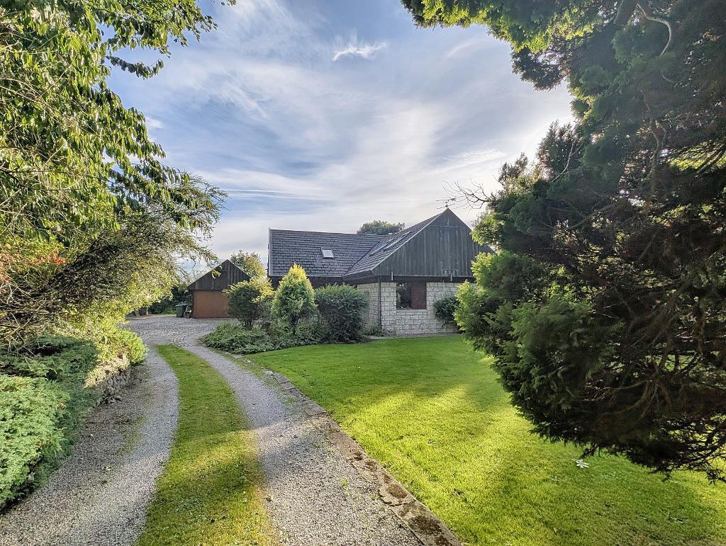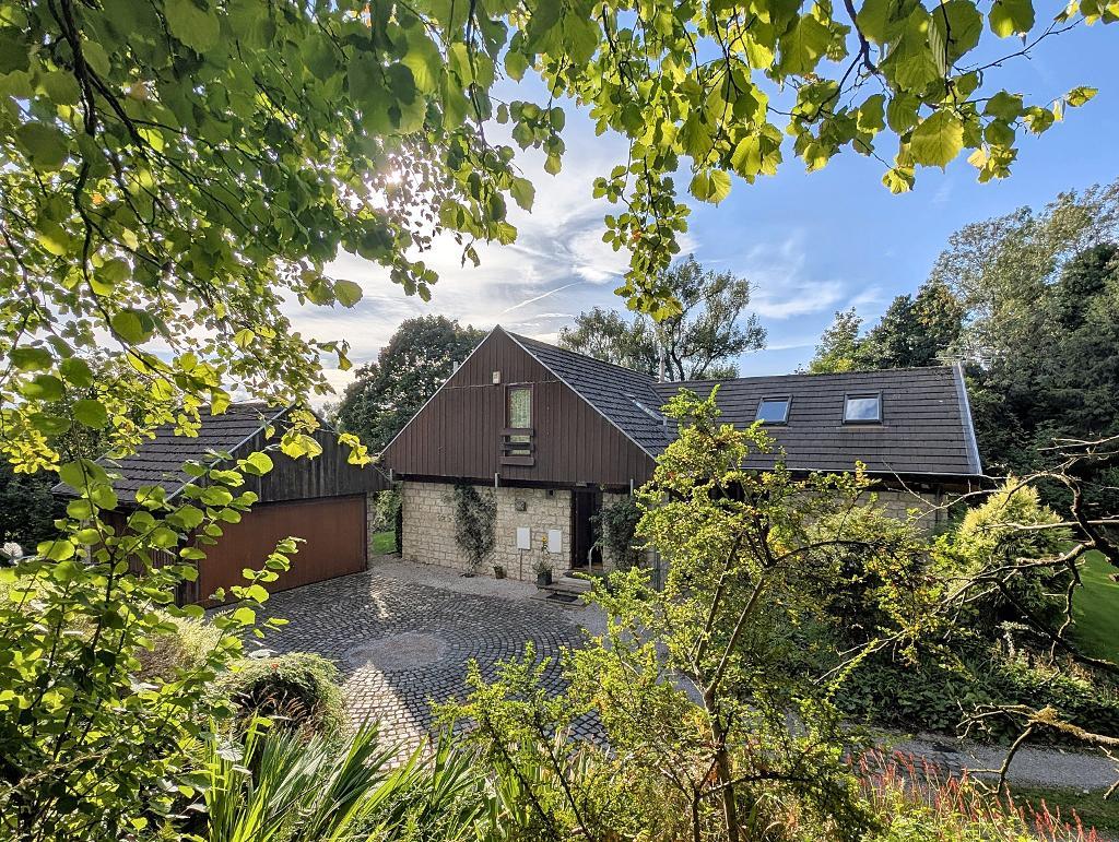 The property enjoys gardens to all sides and is surrounded by woodland. It benefits from a large detached garage and a driveway with ample parking area. The internal accommodation comprises an entrance hallway, ground floor shower room, three ground floor bedrooms (one with an en-suite shower room), large open flowing living space comprising a living area with wood burner which is open to the fitted dining kitchen, sun room and large utility. On the first floor there are a further two large bedrooms with the master enjoying a Juliette balcony and en-suite shower room. In addition, there are two attic rooms which are currently used for storage but with fantastic potential for conversion.