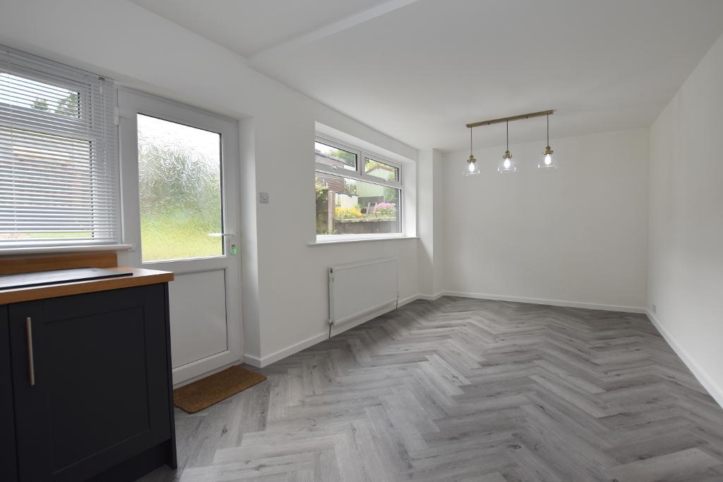 DINING AREA: Outlooks across the rear garden, feature modern wood-effect herringbone-style flooring.
