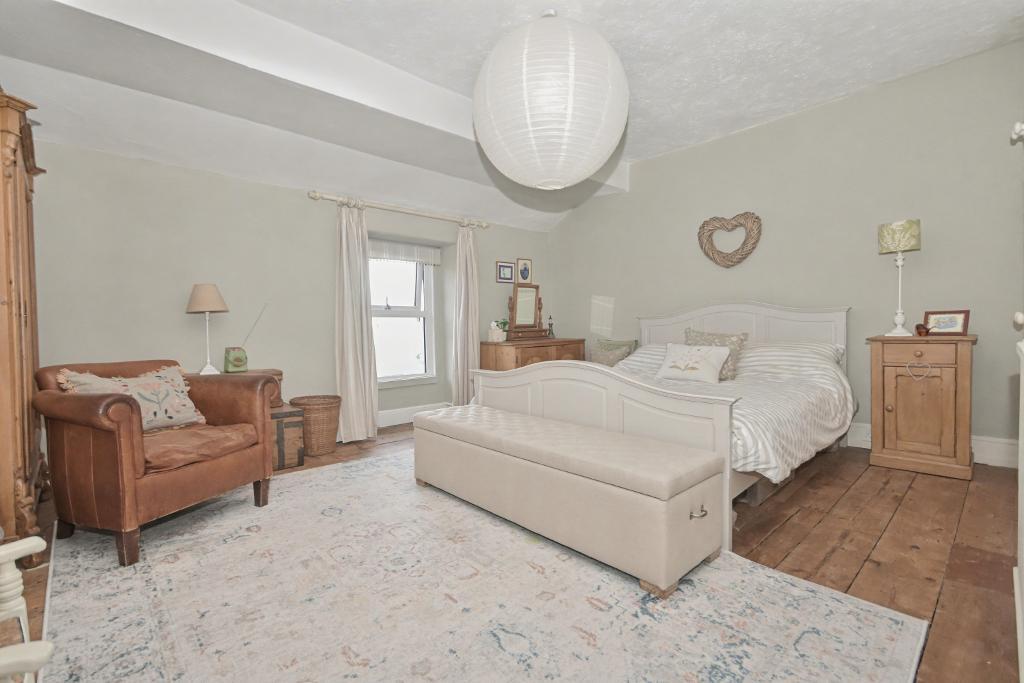 Bedroom Two: 4.5m x 3.5m (14"10" x 11"4"); with feature sash window, feature fireplace, boarded wooden flooring.