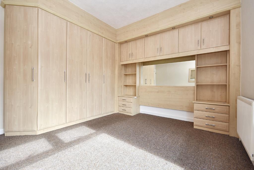 Bedroom two: 2.4m x 4.1m (7"9" x 13"5"); with built-in storage cupboard.