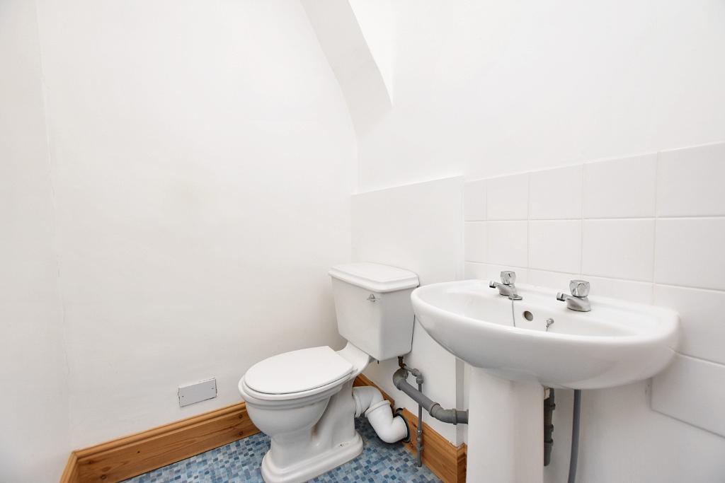 W.C.: 2-piece suite with low suite W.C. and pedestal wash-hand basin with chrome taps.