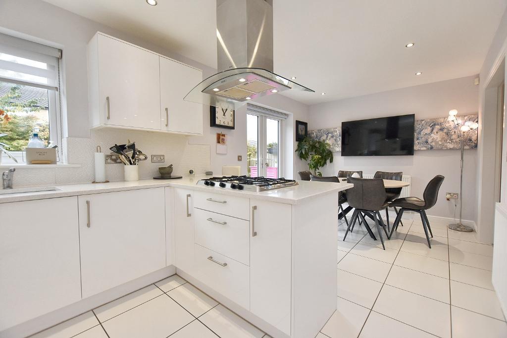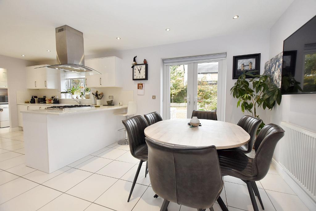 A beautiful modern detached house set on a generous corner plot at the end of a cul-de-sac which offers superb family accommodation with a bright modern finish. Built in 2016, this attractive development offers great access to Whalley. The house has an entrance hallway with herringbone Karndean flooring and a lounge with contemporary fireplace which is open to a large dining kitchen. The kitchen has a range of integrated appliances, a dining area large enough for a 6-seater table and French doors opening onto the rear garden. The ground floor also offers a utility room, 2-piece cloakroom and integral garage with access from the hallway. Upstairs there are four good-sized bedrooms, three with built-in wardrobes, an en-suite shower room and family bathroom.