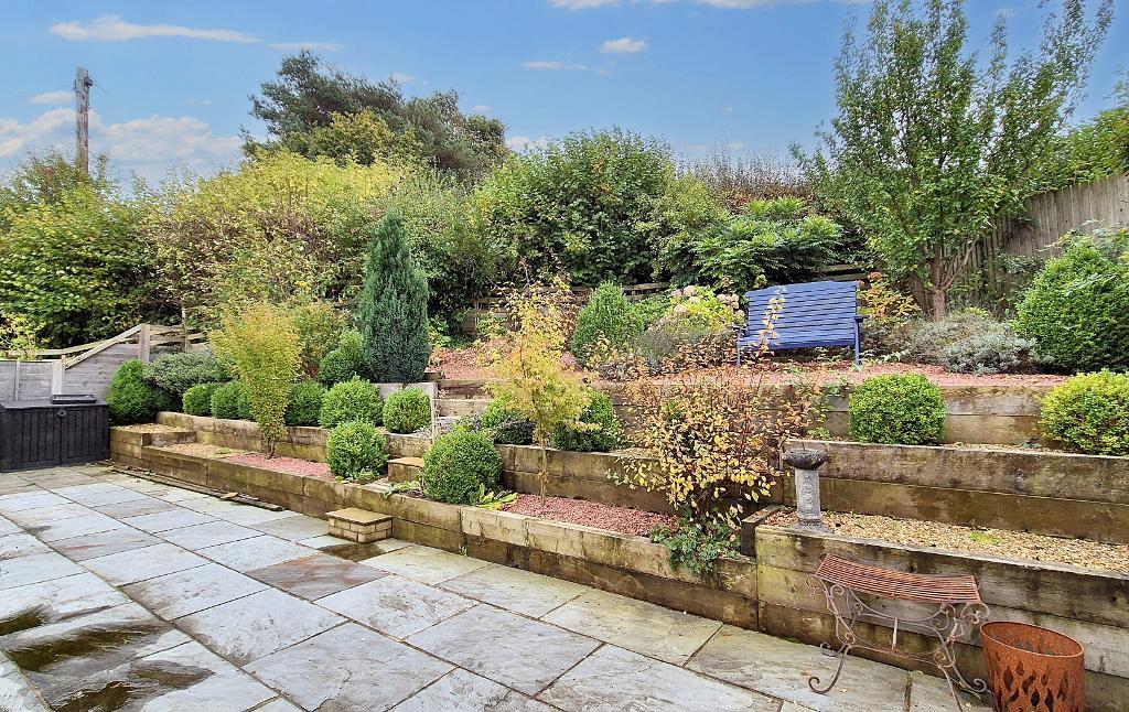 To the front of the property is a good-sized tarmac driveway providing ample parking and well-stocked planting borders. Access along the side of the house leads to a good-sized south-west facing rear garden. The main garden area has a grey Indian stone flagged patio area and pathways with outside lighting and outside tap. There is a central gravelled area with surrounding Indian stone paved pathways and patios and raised planting borders. To the side of the house, steps lead up to a raised garden with Indian stone flagged patio area, tiered gravelled planting areas and patio with excellent outlooks towards Kemple End.