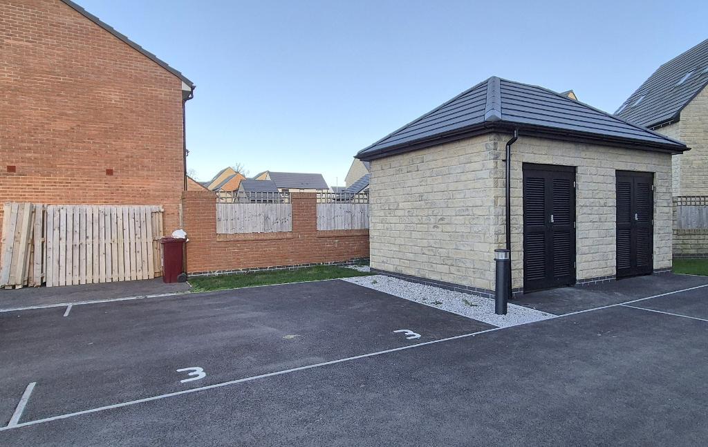 There is a private parking area with 2 allocated parking spaces and use of a bike store. There is a bin store and good-sized communal lawned garden with boundary hedging.