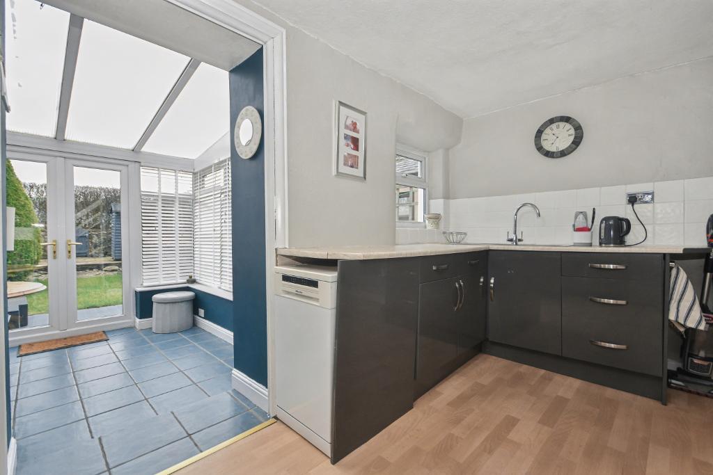 To the rear of the property is a good-sized majority lawned garden with paved patio area and raised beds and an access to the rear around the terrace.