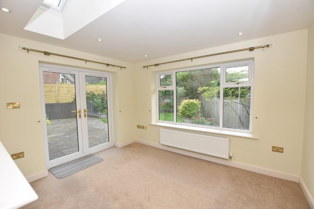 SUN LOUNGE: 12' 1'' x 9' 6'' (3.7m x 2.9m) with large window overlooking the rear garden, PVC glazed French doors opening onto patio area and two Velux windows.