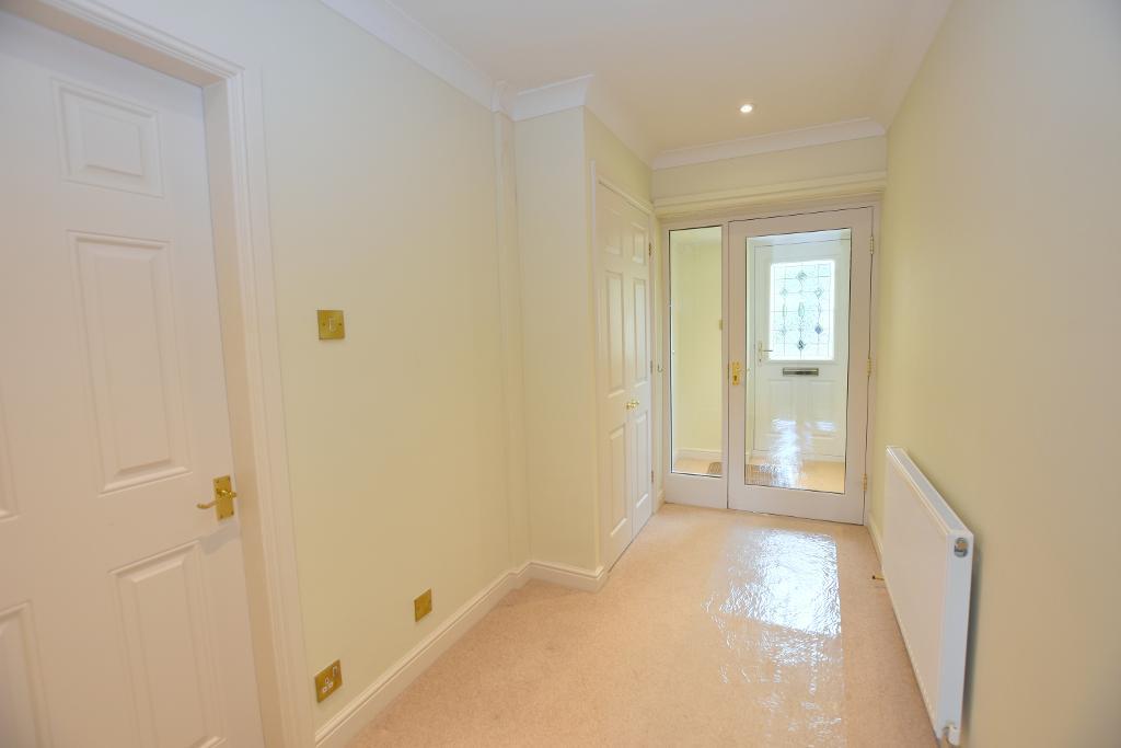 HALLWAY: Coved cornice and recessed spot lights with cloaks cupboard.