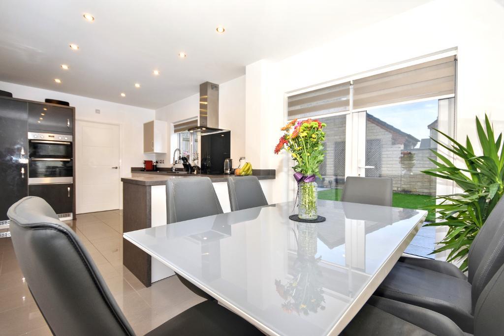 The property enjoys four good size bedrooms, an en suite shower room, house bathroom, large living room with feature bay window, superb fitted dining kitchen, useful utility room and cloakroom, along with an integral garage.