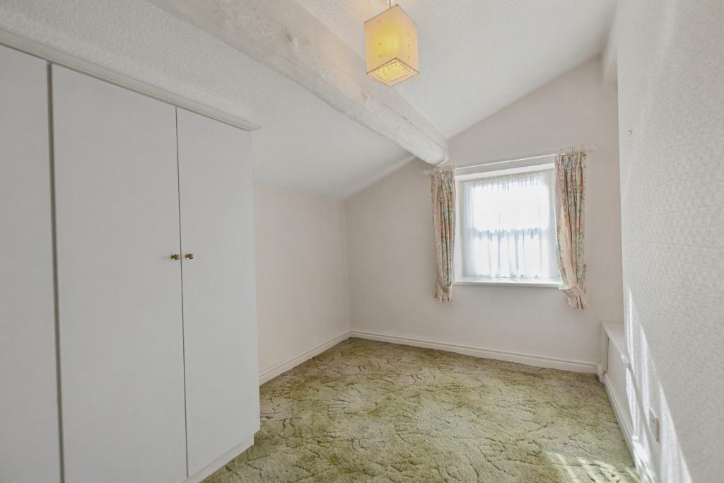 Bedroom Two: 2.3m x 3.5m (7"8" x 11"4"); with feature sash window and built-in wardrobes and exposed beam.