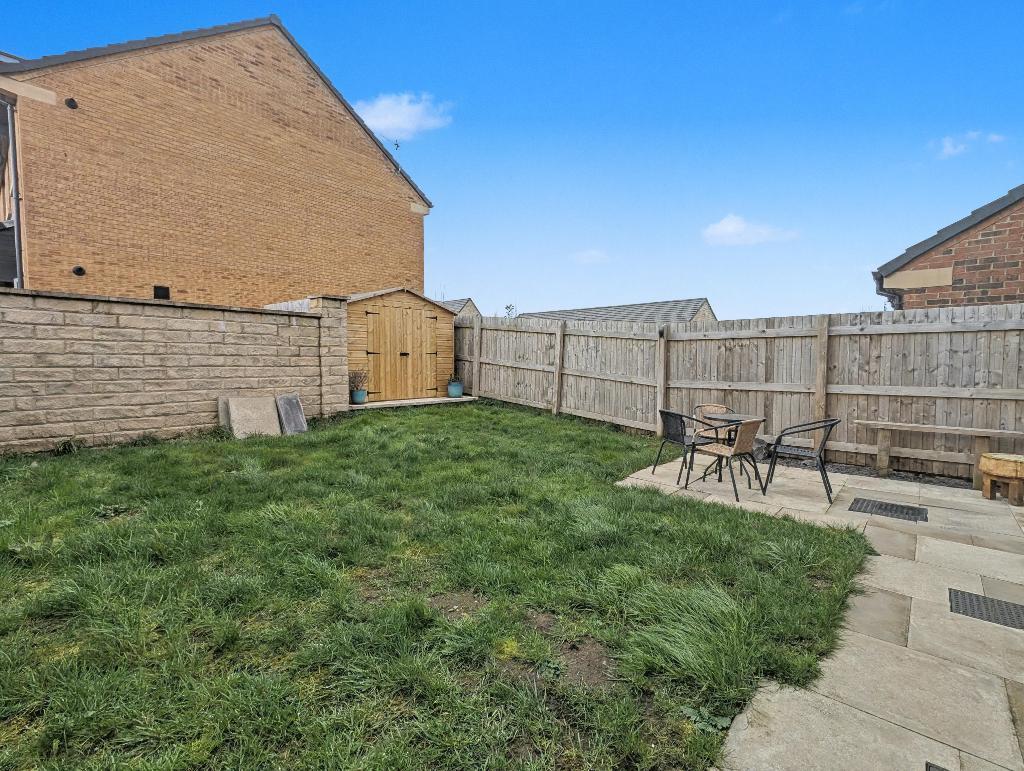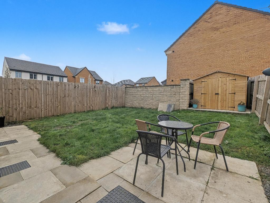 To the front of the property is a lawned garden area with flagged pathway and pebble borders, tarmac driveway for two cars with electric car charger, good size majority lawned rear garden with paved patio areas, pebbled borders and timber storage shed.