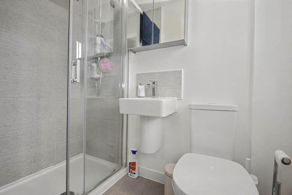 Ensuite Shower Room: 1.1m x 1.9m (3"9" x 6"4") with a three piece suite in white comprising a low level W.C, wash handbasin with tiled splashback, corner shower enclosure with plumbed shower, extractor fan.