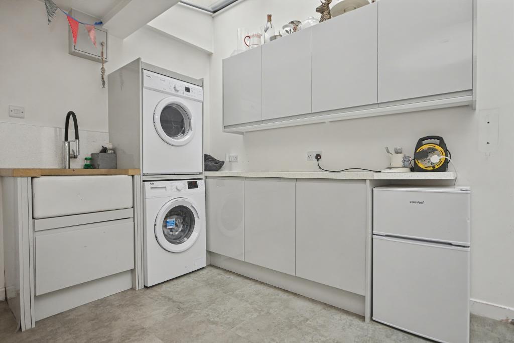 Utility Room: 3.2m x 4.6m (10"4" x 15"2"); with modern base and matching wall storage cupboards with complimentary working surfaces, Belfast sink unit, plumbed and drained for an automatic washing machine, part glass roof, UPVC external doors to the front and rear.
