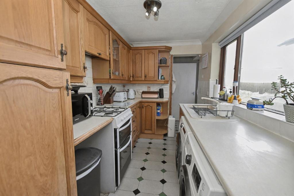 Kitchen: 2.0m x 3.3m (6"6" x 10"10"); with a fitted range of oak fronted wall and base units with complimentary laminate work surface and tiled splashback, one and a half bowl single drainer sink unit with mixer tap, gas cooker with oven, separate grill and four-ring gas hob with extractor over. Plumbing for a washing machine, space for a tumble drier, tiled floor, coved cornicing, wall-mounted central heating boiler installed in 2024 which is still under guarantee and half glazed PVC door to rear yard.
