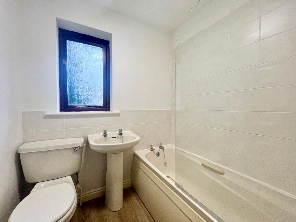 Bathroom: With 3-piece suite comprising low suite w.c., pedestal wash handbasin with chrome taps and panelled bath with chrome taps and Triton electric shower over and glass shower screen.
