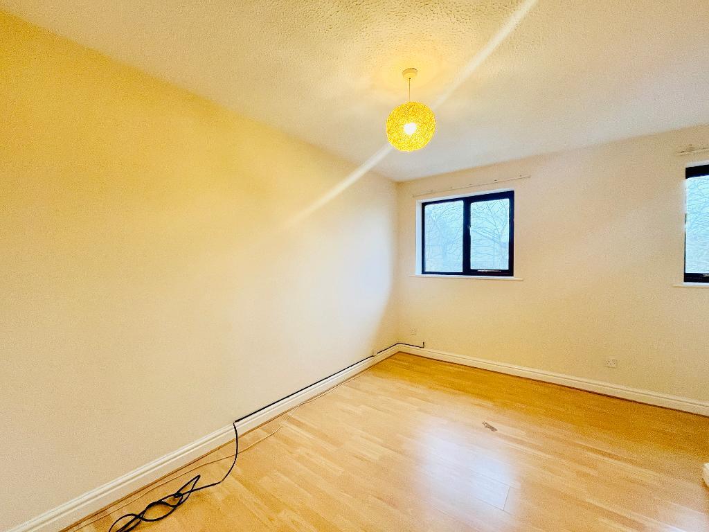 Bedroom one: 3.7m x 2.6m (12' x 8'7") + alcove; with 2 windows to front elevation, laminate flooring, airing cupboard housing combination central heating boiler.