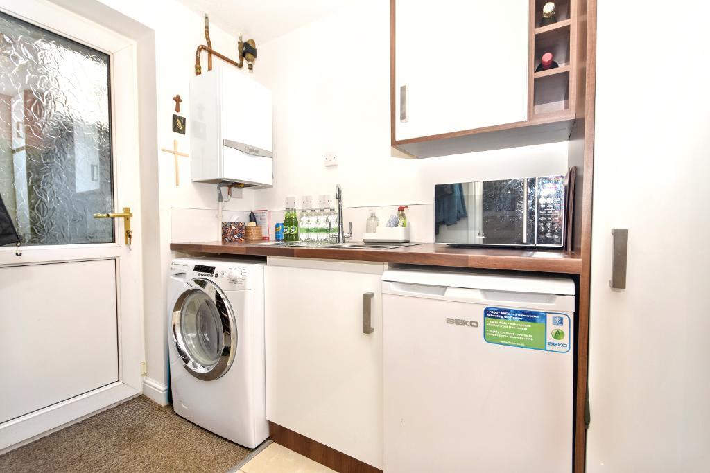 UTILITY ROOM: 7' 6'' x 5' 6'' (2.3m x 1.7m) with a range of fitted base and matching storage cupboards with complimentary working surfaces, single drainer stainless steel sink unit. Plumbed and drained for automatic washing machine. Tiled flooring and partially tiled walls. UPVC external door to the side of the property. INTEGRAL GARAGE with up and over door to the front of the property, power and lighting points. Personnel door to the side of the property.