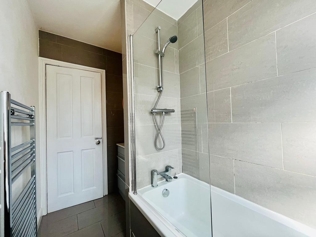 Bathroom: Housing three-piece modern suite comprising low suite w.c, panelled bath with thermostatic controlled shower over, vanity washbasin with drawers under.