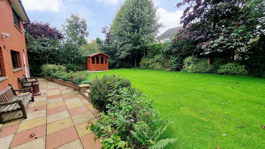Outside there is a lawned front garden, blocked paved driveway leading to an integral double garage and a lovely rear garden with lawn, well stocked borders and a summer house. Gardner and window cleaner included.