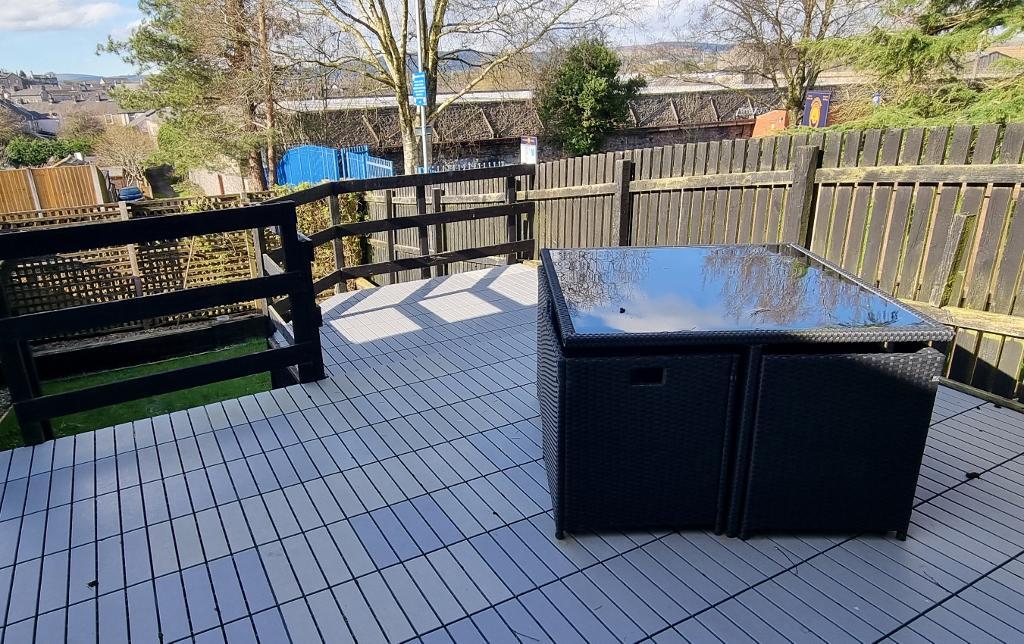 To the front of the property are 2 parking spaces, a paved pathway to front door and front lawn. There is a rear garden with a large raised decked patio area with timber balustrade and steps down to a lawn with gravel border for easy maintenance with timber boundary fence.