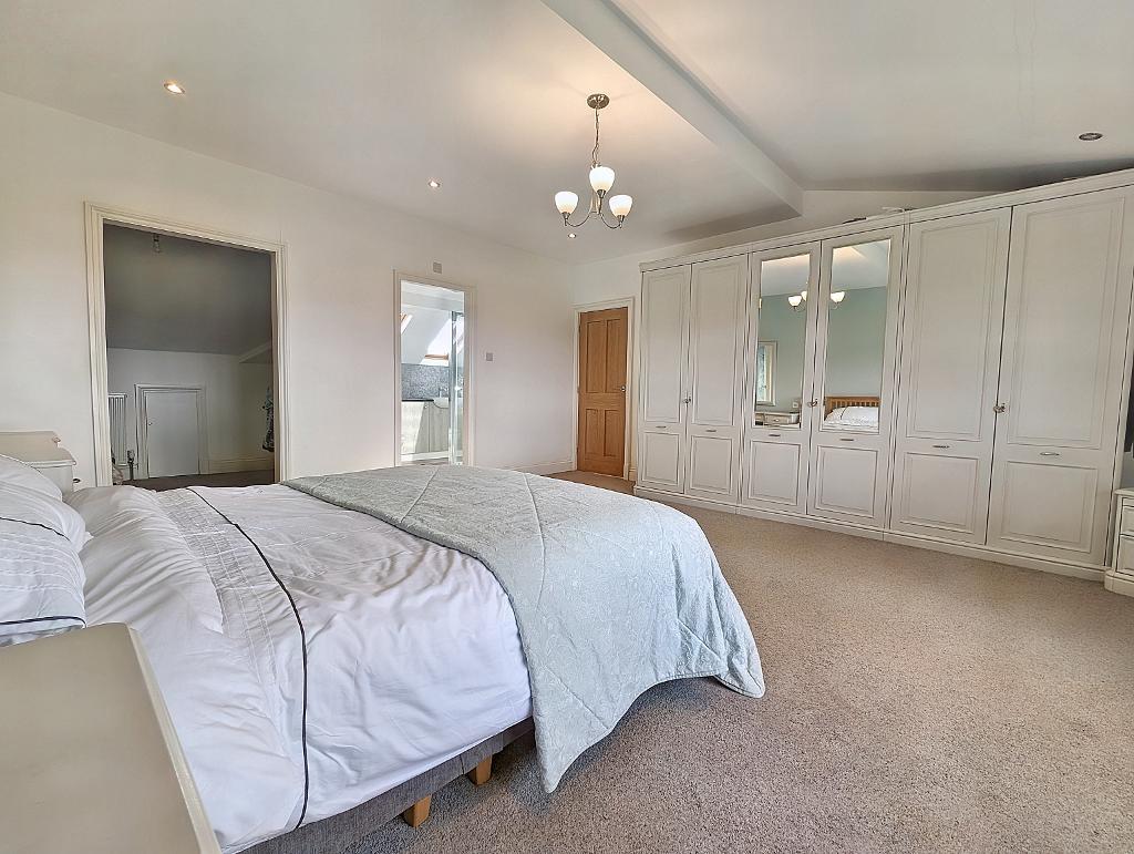 Master bedroom: 5.0m x 5.2m (16"6" x 17"1"); a spacious, bright room enjoying views to the rear over the surrounding countryside, built-in wardrobes, matching bedside tables and low voltage lighting.