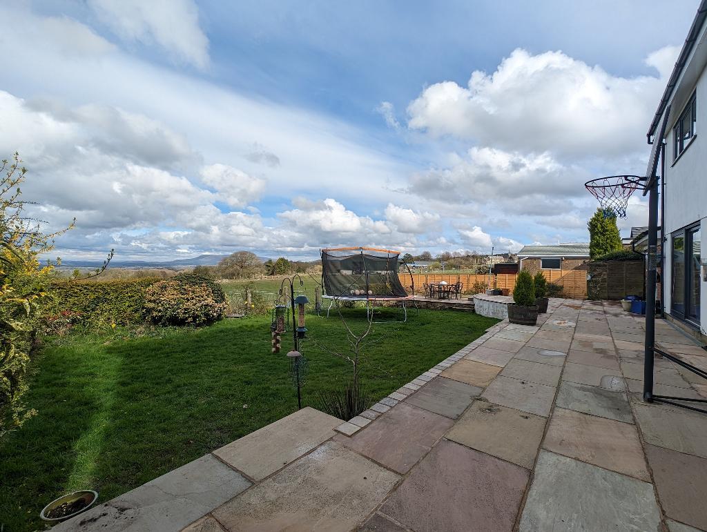 The property is situated on a large plot with a tarmac driveway and turning area leading to the INTEGRAL GARAGE measuring 4.5m x 4.6m (14"11" x 15"2"). There are large lawned front gardens with mature trees and hedgerows surrounding. Pathways lead around both sides of the property to a good-sized, majority lawned rear garden with a large, raised Indian stone flagged L-shaped patio which is elevated over the gardens and enjoys distant rural views of the surrounding area.