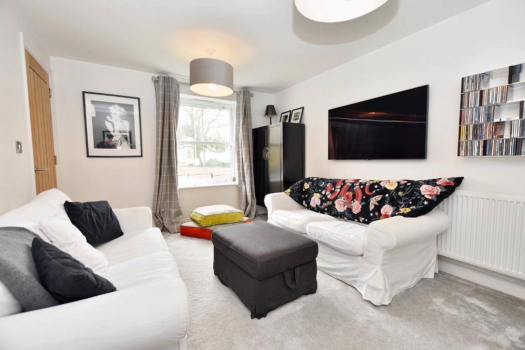 A fantastic modern detached house situated on this smart development with attractive outlooks across the central green to the front. This high specification house benefits from a Siematic kitchen with Neff appliances, Villeroy & Boch bathroom suites and modern central heating system with air source heat pump. The house is stone faced at the front with attractive PVC sash windows and feature estate railings surrounding the front garden, there is a large drive to the side with detached double garage and west facing lawned garden to the rear. The accommodation is arranged across three floors with a central hallway with cloakroom, two reception rooms to the front and at the rear is a full width family dining kitchen with bi-fold doors opening onto the rear garden. Upstairs on the first floor the master bedroom has a dressing area leading to an en-suite bathroom with large walk-in shower. There are two other double bedrooms and a large 4-piece bathroom. On the top floor there is a large landing currently used as a study area, double 4th bedroom, shower room and large walk-in airing cupboard.