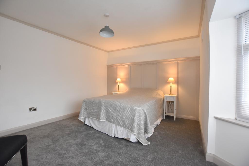 Bedroom one: 4.3m x 4.0m (14'1" x 13'2"); with feature bay window, wood panel feature wall and coved cornicing.