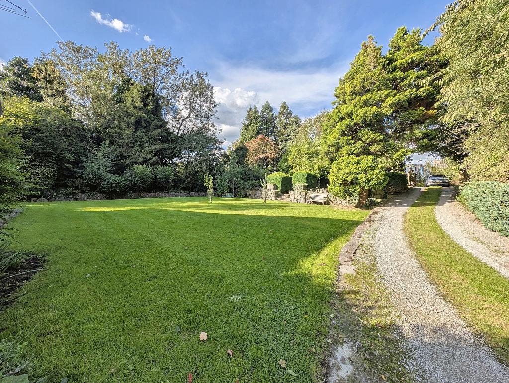 A gravel driveway leads to the property and a large parking area/turning circle, along with a good-sized DETACHED GARAGE with up-and-over door. The property is surrounded by gardens which are majority laid to lawn with hidden pathways off into the surrounding woodland. There are additional patio areas, flowerbeds, shrubs and mature trees surrounding the property, along with additional vehicular access to the rear from Pimlico Road. The gardens benefit from a private feel and as they surround the property enjoy sun at various times of the day.
