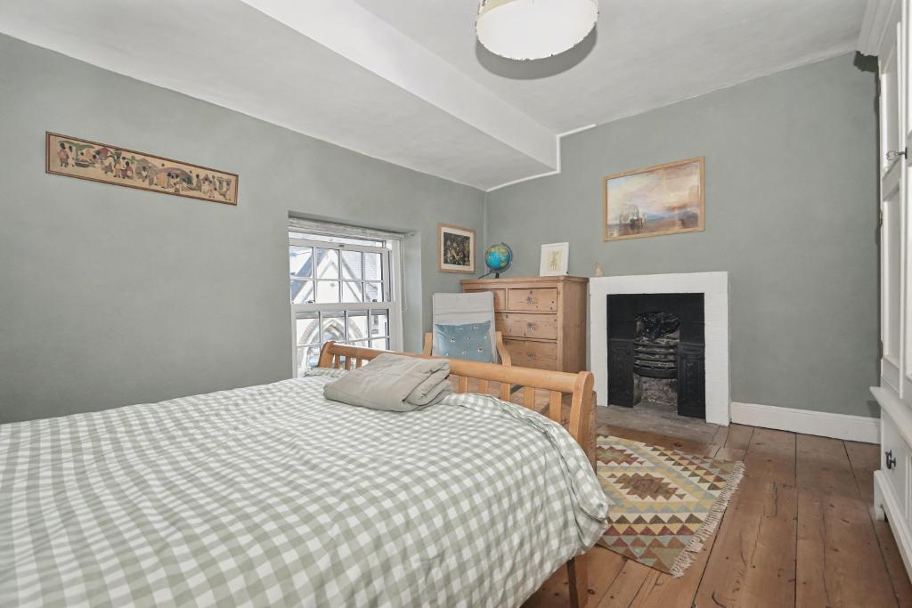 Bedroom Two: 4.5m x 3.5m (14"10" x 11"4"); with feature sash window, feature fireplace, boarded wooden flooring.