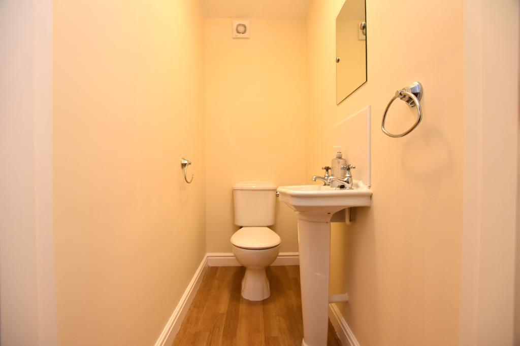 Cloakroom: 2-piece suite comprising low suite w.c. and pedestal washbasin.