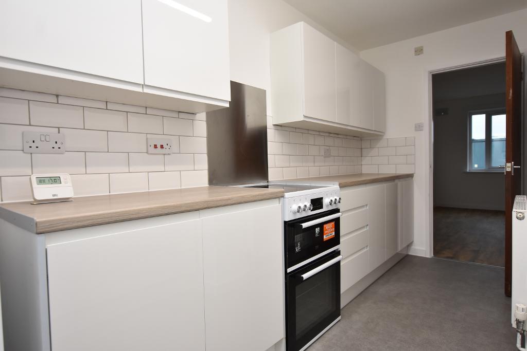 Kitchen: 4.2m x 2.3m (13"9" x 7"7"); with a range of bright, modern fitted wall and base units with complementary laminate working surfaces, free-standing electric oven with 4-ring ceramic hob, fridge freezer and washing machine.