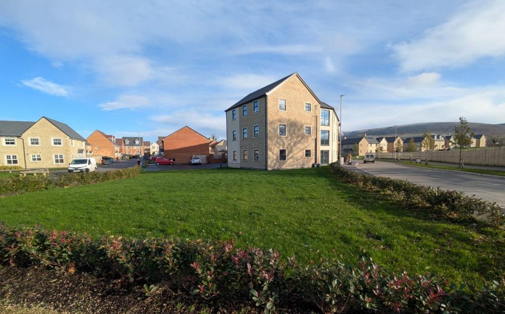 A fantastic opportunity to rent this brand new first floor apartment which offers light and airy accommodation built to modern standards with an energy rating B. The apartment has a hallway with two store cupboards, the living area is open-plan with lounge and kitchen with outlooks towards Pendle Hill. The kitchen is fully integrated with built-in oven, hob, fridge-freezer, dishwasher and washing machine with under-unit lighting and smart wood effect vinyl flooring. There are two double bedrooms, the master has an en-suite shower room, and 3-piece bathroom with shower over the bath.