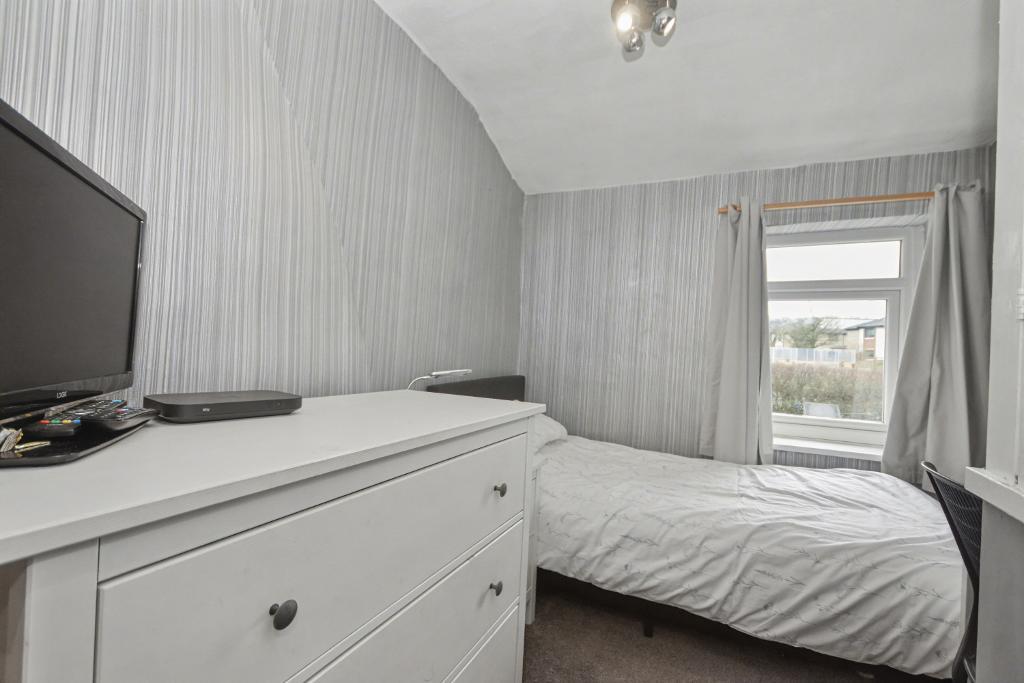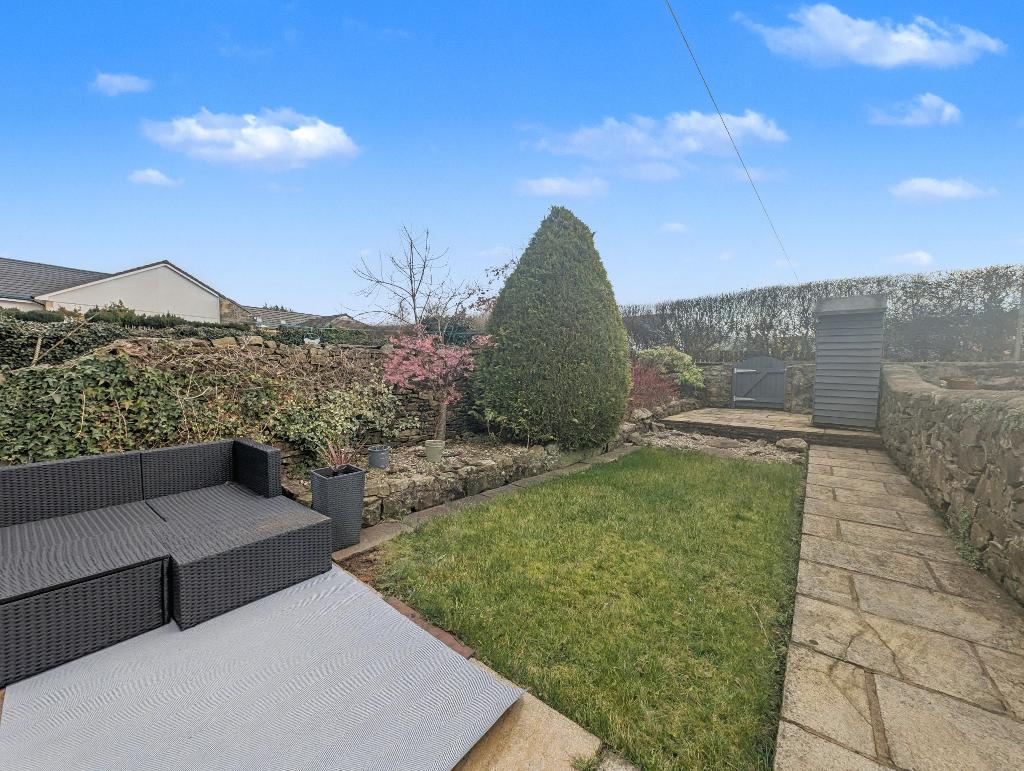 To the rear of the property is a good-sized majority lawned garden with paved patio area and raised beds and an access to the rear around the terrace.