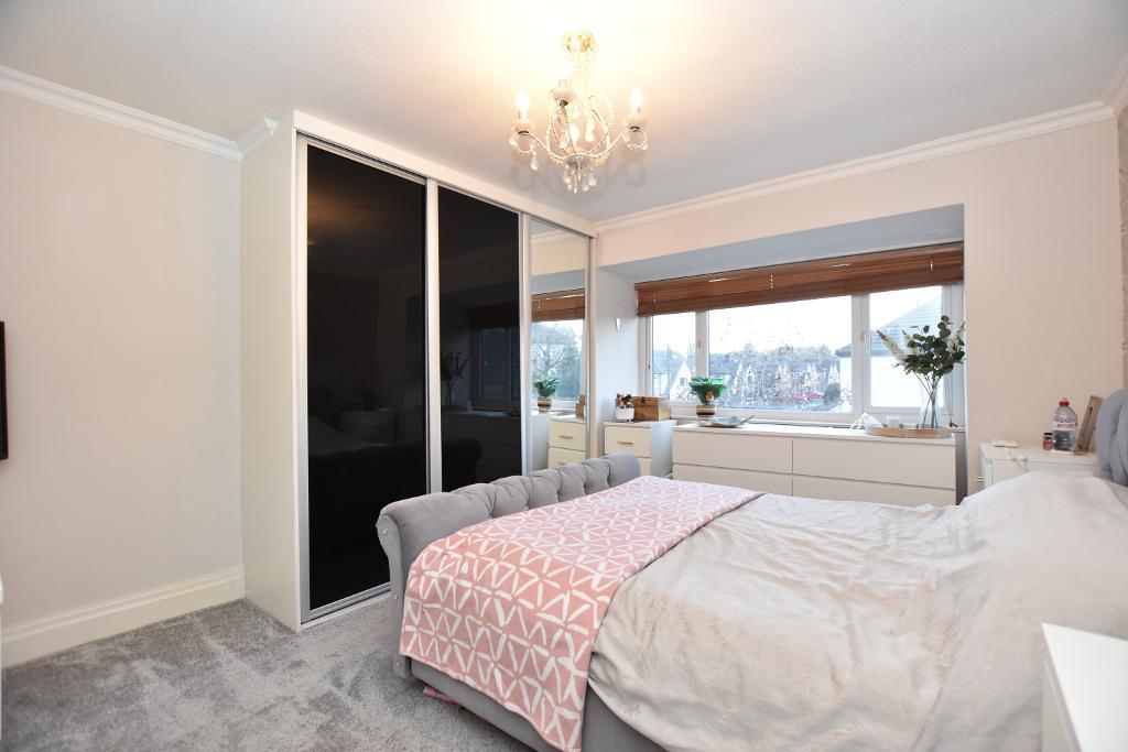 BEDROOM ONE: 3.5m x 4.2m (11"6" x 13"10"); with coved corning and fitted wardrobes with sliding doors.