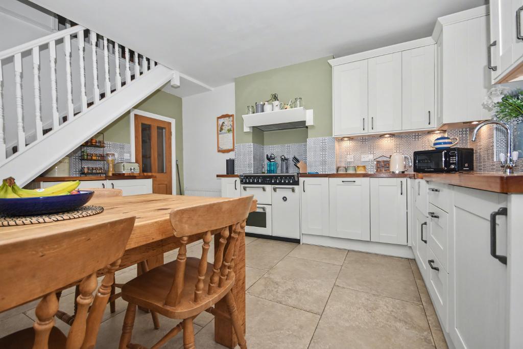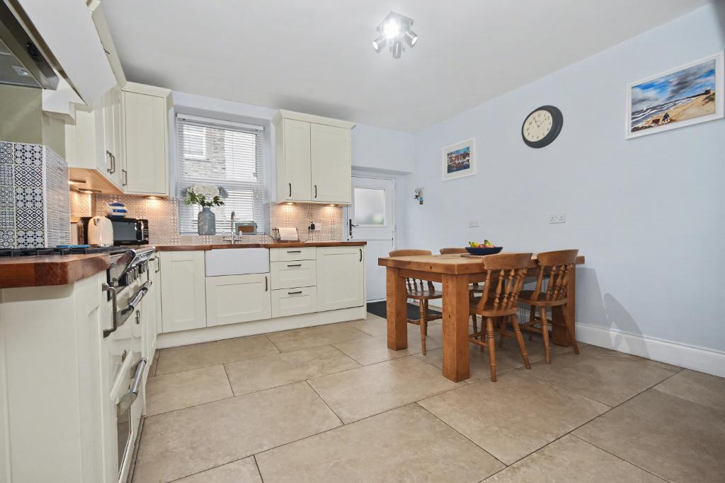 Kitchen Diner: 3.9m x 4.5m (12'10" x 14'8"); with a range of fitted basin and matching wall storage cupboards with complimentary working surfaces incorporating a Belfast sink unit. A Richmond cooker with dual oven and grill and five ring gas hob with extractor over. Built in fridge and freezer, built in dishwasher, built in washer drier, stone tiled floor and external stable door to the rear of the property. Staircase to the first floor landing.