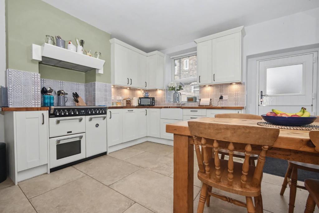 Situated in the sought after Low Moor village area of Clitheroe this attractive stone built mid terrace cottage offers well presented, spacious accommodation throughout with a large living room with a multi fuel burner, a large fully fitted dining kitchen with Richmond dual oven cooker and Belfast sink.