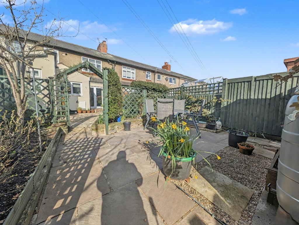 To the front of the property is a walled garden area with pebbled flowerbeds and shrubs. To the rear of the property is an excellent sized rear garden split into two sections with Indian stone flags, flowerbeds, shrubs and a timber storage shed with power. The garden is a lot bigger than most properties in the area and enjoys sun for a good portion of the day.