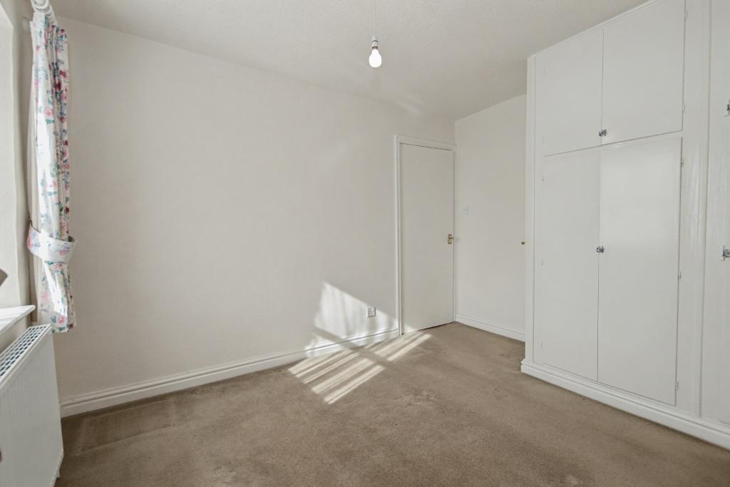 Bedroom Two: 2.3m x 3.5m (7"8" x 11"4"); with feature sash window and built-in wardrobes and exposed beam.