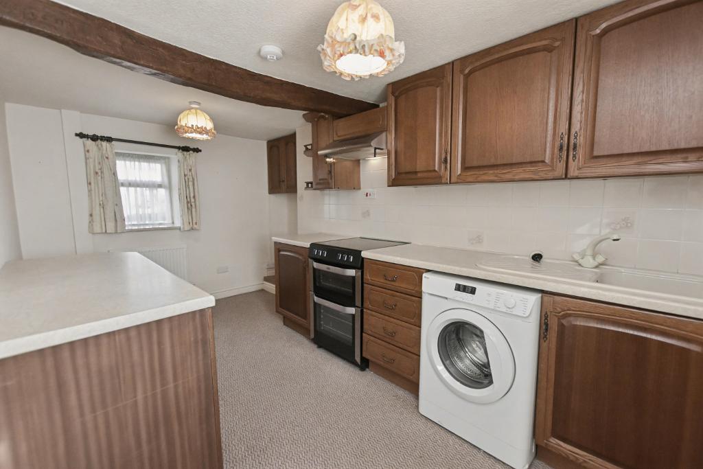 Kitchen: 2.2m x 4.3m (7"4" x 14"0"); with a fitted range of oak fronted wall and base units with complimentary laminate work surface and tiled splashback, one bowl single drainer sink unit with mixer tap, Belling electric cooker with oven, separate grill and four ceramic ring hob with extractor over. Plumbing for a washing machine, space for fridge freezer, space for breakfast table and chairs.