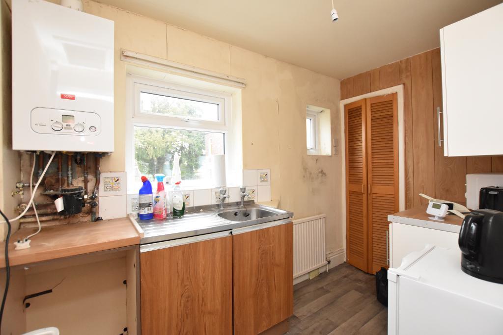 Kitchen: 9'8" x 6'0" A range of base and wall cupboards, single drainer sink unit and wall mounted central heating boiler.
