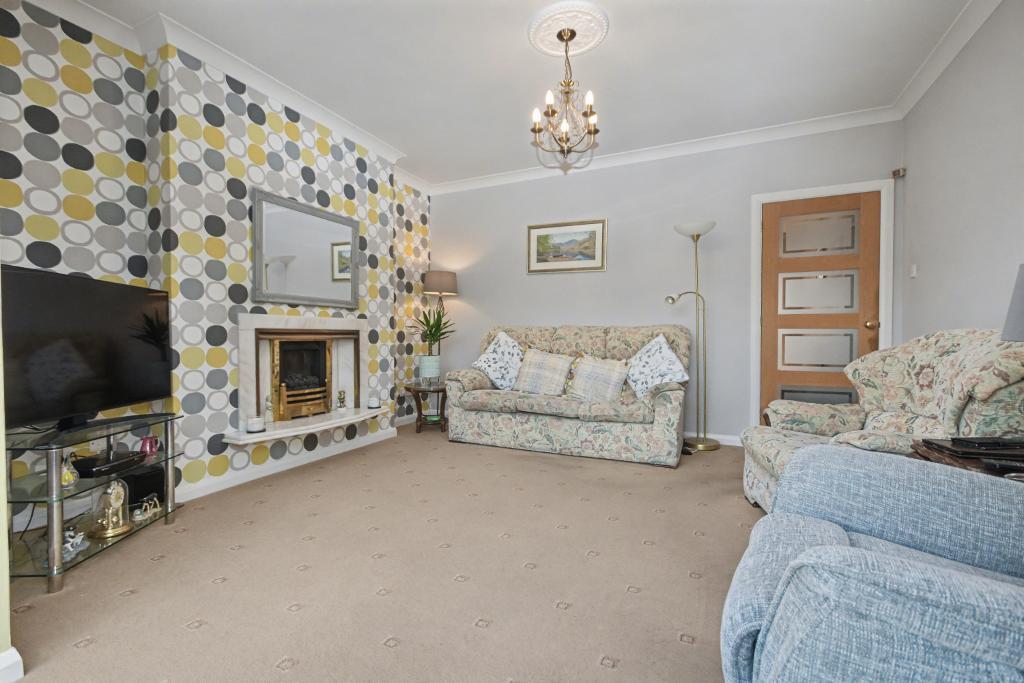 Lounge: 4.1m x 3.7m (13'4" x 12'2"); with a living flame gas fire in a feature surround, television and telephone points, open to: