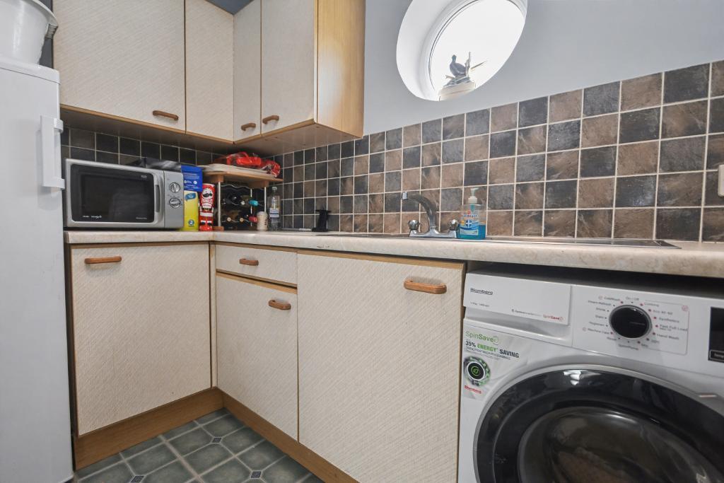 Utility Room: 3.1m x 1.9m (10"2" x 6"2") with feature portal window, plumbed and drained for an automatic washing machine, Worcester central heating boiler, single drainer stainless steel sink unit, partially tiled walls.